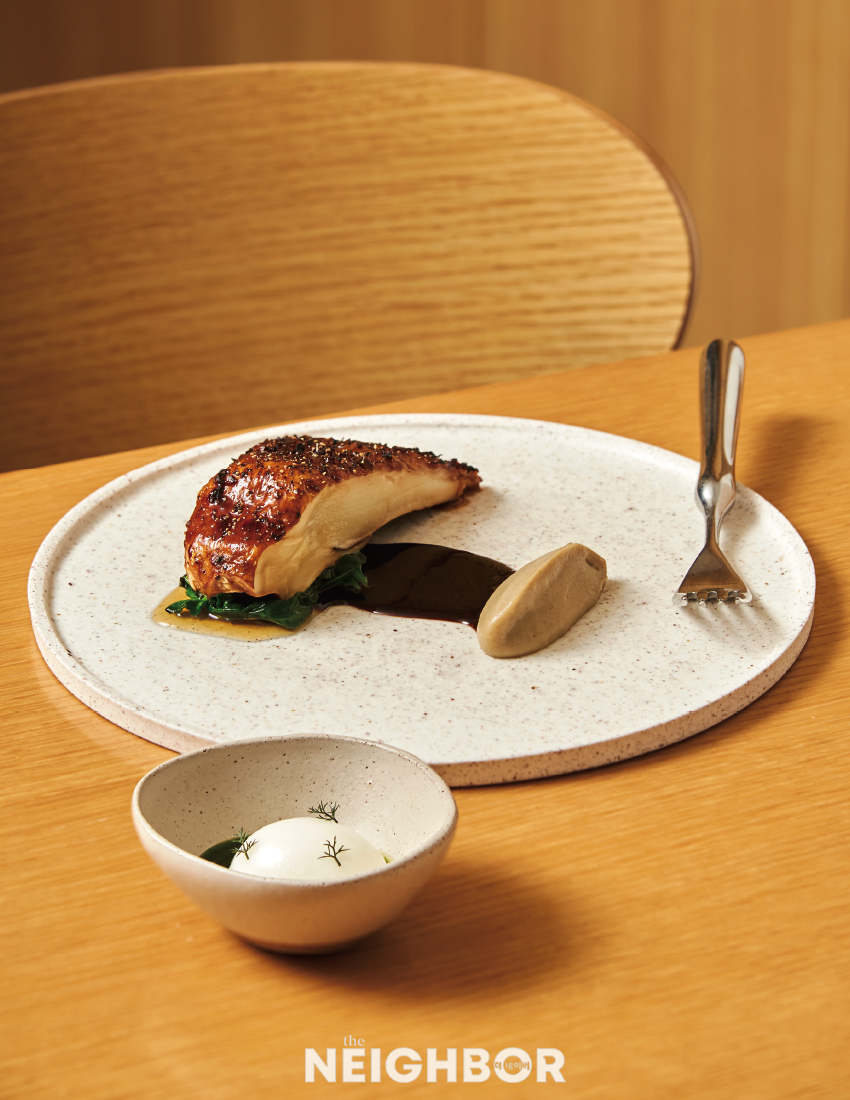ºñ°Ç ·¹½ºÅä¶û¿¡¼´Â ¾î¶² Àç·á·Î ¸ÞÀÎ ¿ä¸®¸¦ ¼±º¸Àϱî? <¹Ì½¦¸° °¡ÀÌµå ¼¿ï&ºÎ»ê 2025>¿¡ 1½ºÅ¸·Î »õ·Ó°Ô µî±ØÇÑ ·¹ÀÇ ¸ÞÀÎ µð½Ã´Â dz¼ºÇÑ ½Ä°¨ÀÇ ¾ÆÀ§¹ö¼¸ ¿ä¸®´Ù. µµÅèÇÑ ¾ÆÀ§¹ö¼¸Àº ¼öºÐÀ» ¾à°£ ¸Ó±ÝÀº Á¤µµ·Î ¿Àºì¿¡ Á¶¸®ÇÏ¿© ººÀº ¼¶ÃÊ À§¿¡ ¿Ã¸®°í, µÅÁö°¨ÀÚ Ç¶·¹¸¦ °çµé¿´´Ù. ¿©±â¿¡ À°·ù ±â¹ÝÀÇ ÁÖ ´ë½Å ä¼Ò¿Í °úÀÏ ²®ÁúÀ» ¿À·¡ ²úÀÎ µÚ °ÜÀÚ¾¾¸¦ ´õÇÑ ¼Ò½º¸¦ »Ñ·Á ³½´Ù. °ú½ÇÀÇ »óÅÇÔ°ú ³óÃàµÈ ÇâÀÌ ÆÛÁö°í °ÜÀÚ¾¾°¡ ÅåÅå Æ¢´Â ½Ä°¨À» ´õÇÑ´Ù. ¸ÞÀÎ µð½Ã ÀÌÈÄ µîÀåÇÏ´Â ¼Ò¸£º£´Â Â÷°¡¿î ¿Âµµ·Î ÀÔÀ» ¾Ä¾î³½´Ù. ·¹¸ó&¼ÖÀÙ ¼Ò¸£º£¿Í Ææ³Ú ½Ã·´ÀÌ »õÄÞÇÏ°í »óÄèÇÏ°Ô ¾î¿ì·¯Áö´Ï µðÀúÆ®¸¦ ¸ÂÀ» Áغñ ¿Ï·á´Ù.