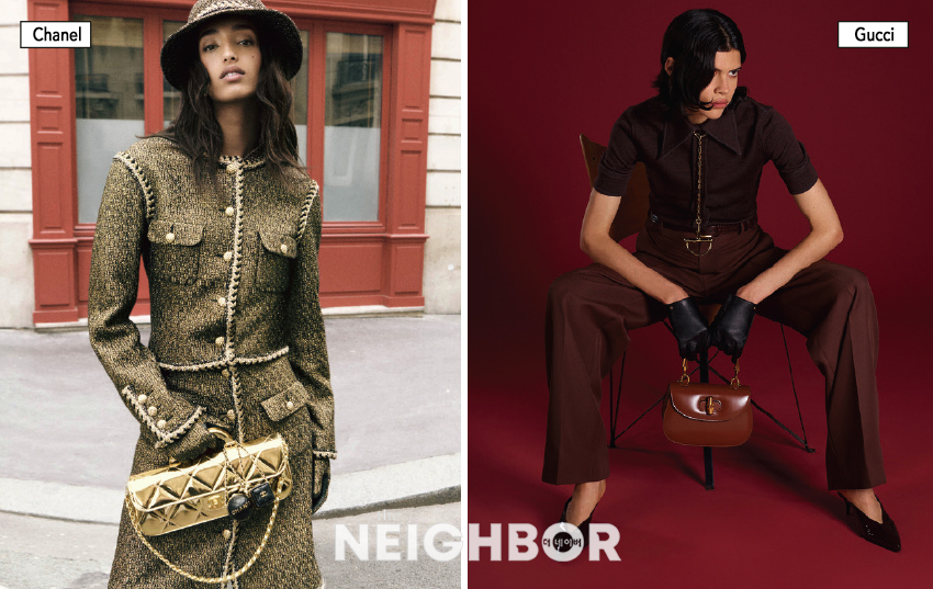 ¸ðµ¨ ¸ð³ª Åõ°¡µå¿Í Æ÷Åä±×·¡ÆÛ ¹ÌÄ«¿¤ ¾á¼ÕÀÌ ÇÔ²²ÇÑ Ä·ÆäÀÎ. ÆÄ¸®¸¦ ¹è°æÀ¸·Î ¹Ý¦ÀÌ´Â °ñµå Æ®À§µå ¼Â¾÷À» ÀÔ°í, Æ®·ÕÇÁ·ÚÀ¯ ±â¹ýÀÌ Æ¯Â¡ÀÎ Ä÷º¼Ç ·èÀ» ¿Ïº®ÇÏ°Ô ¿¬ÃâÇß´Ù. ·Ï, ·Î¸Çƽ, °ÀÎÇÔÀÌ °øÁ¸ÇÏ´Â ´Ù¸éÀûÀÎ »þ³ÚÀÇ ¿©¼º¼ºÀ» º¸¿©Áá´Ù.