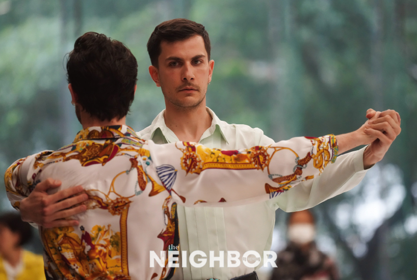 »ç¶ûÀ» °í¹éÇϱâ À§ÇØ ¹«¸À» ±¸ºÎ¸° ä ºù±Ûºù±Û µµ´Â ÃãÀÎ ‘ÆúÄ« Ä¡³ªÅ¸’¸¦ ÀçÇØ¼®ÇÑ ÃãÀ» µÎ ¸íÀÇ ³²ÀÚ ¹«¿ë¼ö°¡ ¼±º¸ÀÌ´Â ‘¸¶Áö¸· ÃãÀº ³ª¸¦ À§ÇØ’. ©MAK