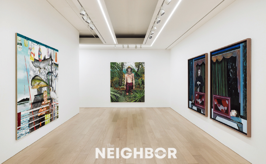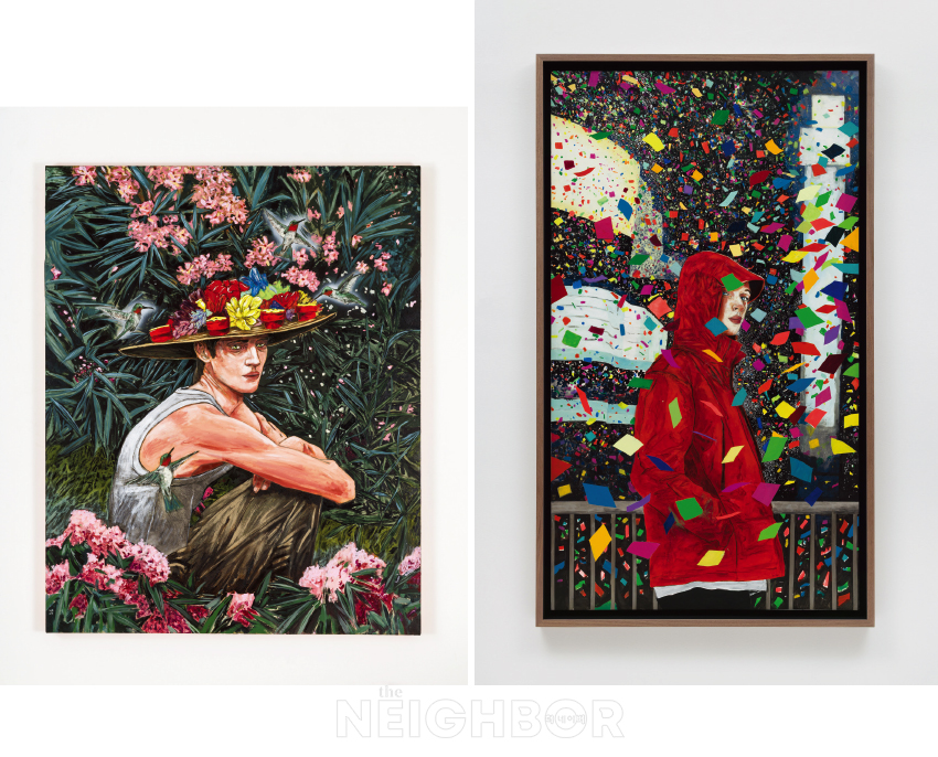 3 ‘The hummingbird enthusiast’, 2025, Acrylic on linen, 127×101.6cm. Courtesy the artist and Lehmann Maupin, New York, Seoul, and London. Photo by Silvia Ros. 4 ‘Rain’, 2025, Acrylic on paper, 177.8×101.6cm. Courtesy the artist and Lehmann Maupin, New York, Seoul, and London. Photo by OnArt Studio.