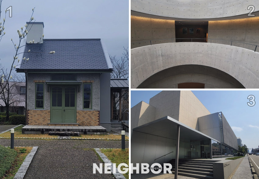 ƯÈ÷ °¡³ªÀÚ¿Í Ãâ½ÅÀÇ °ÇÃà°¡ ¿ä½Ã¿À ´Ù´Ï±¸Ä¡(1937~2024)´Â ´º¿å Çö´ë¹Ì¼ú°ü °ÇÃà°¡·Îµµ À¯¸íÇÏ´Ù. ±×ÀÇ Áý¾ÈÀº ´ë´ë·Î °ÇÃà ÀÏ¿¡ Á¾»çÇߴµ¥, ¾Æ¹öÁö ¿ä½Ã·Î ´Ù´Ï±¸Ä¡(1904~1979)´Â µµÄì´ë °ÇÃà°ú ±³¼ö·Î ÀçÁ÷Çϸ鼵µ °¡³ªÀÚ¿ÍÀÇ ¿ª»çÀû Àå¼Ò°¡ »ç¶óÁ®°¡´Â °ÍÀ» ¾ÈŸ±î¿öÇϸç Áö½ÄÀΰú ÇÔ²² ‘°¡³ªÀÚ¿Í Áø´Ü’À» ÅëÇØ, º¸Á¸°ú °³¹ßÀÇ Á¶È¸¦ µµ½Ã Á¶¼ºÀÇ ±âº»À¸·Î »ï¾Æ¾ß ÇѴٴ öÇÐÀ» ÀÏÂïºÎÅÍ ¼³ÆÄÇϱ⵵ Çß´Ù. ¾Æ¹öÁö°¡ »ì¾Ò´ø ÁýÀº Áö±Ý ¾Æµé ¿ä½Ã¿À ´Ù´Ï±¸Ä¡¿¡ ÀÇÇØ °ÇÃà¹Ú¹°°üÀÌ µÇ¾ú´Ù. À̰÷ÀÇ ÇÏÀ̶óÀÌÆ®´Â 2Ãþ¿¡ ¸¶·ÃµÈ ÀÀÁ¢½Ç°ú ¸¶À»À» ³»·Á´Ùº¼ ¼ö ÀÖ´Â °Å´ëÇÑ ÅëâÀÌ ÀÖ´Â ¶ó¿îÁö´Ù. ³»ºÎ¿¡´Â ¾Æ¹öÁö ¿ä½Ã·Î°¡ ¸¸µç µµÄì ¾ÆÄ«»çÄ« À̱ÃÀÇ ÀϺ»½Ä º°°ü ‘À¯½ÅÅ×ÀÌ’ÀÇ ¸ÞÀÎ °´½Ç°ú ´Ù½ÇÀ» ÀçÇöÇÑ ÀϺ»½Ä ¶ó¿îÁö°¡ ÆîÃÄÁø´Ù. ƯÈ÷ ´Ù½ÇÀº ÀϺ» ÀüÅë ‘³ë’ ¿¬±ØÀÇ ¹«´ë Çü½ÄÀ» Â÷¿ëÇÏ¿´´Âµ¥, ÀÌ ¶ÇÇÑ °¡³ªÀÚ¿ÍÀÇ ¹®È Áß Çϳª´Ù. °¡³ªÀÚ¿ÍÀÇ »ç¹«¶óÀÌ´Â Â÷¿Í ÇÔ²² ³ë ¿¬±ØÀ» Áñ°å´Âµ¥, ±× ÀüÅëÀÌ ³²¾Æ 1972³â ÀϺ» ÃÖÃÊÀÇ µ¶¸³ °ø¸³ ³ë ±ØÀåÀÌ °¡³ªÀÚ¿Í¿¡ ¼¼¿öÁ³°í, ÇöÀçµµ ³²¾Æ ÀÖ´Ù.