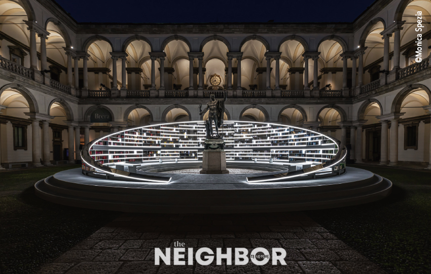 MDW 2025¿¡¼ ´Ü¿¬ ÈÁ¦°¡ µÈ ÀÛǰÀº ºê·¹¶ó ¹Ì¼ú°ü ¾È¶ã¿¡ ¼³Ä¡µÈ ºûÀÇ µµ¼°ü. ‘¿¡¿ì·Î ·çü(Á¶¸í ¹Ú¶÷ȸ)’ÀÇ ÀÏȯÀ¸·Î »ì·Î³×°¡ ÁÖÃÖÇϰí ÀÌÅ»¸®¾Æ ´ëÇ¥ ÃâÆÇ»ç&¼Á¡ÀÎ ÆçÆ®¸®³Ú¸®(Feltrinelli)°¡ ÈÄ¿øÇØ ¿µ±¹ Ãâ½Å ¹«´ë ¿¬Ãâ°¡, ¿¡½º µ¥ºí¸°(Es Devlin)°ú ¿Ï¼ºÇÑ °ÍÀÌ´Ù. ±×³à´Â ºñ¿æ¼¼¿Í Ä¿¹ ¿þ½ºÆ®ÀÇ Åõ¾î ¹«´ë, »þ³ÚÀÇ ·±¿þÀ̸¦ ¸ÃÀº ¹Ù ÀÖ´Â ½Ç·ÂÀڷΠƯÈ÷ Á¶¸íÀ» Àß ¾²±â·Î À¯¸íÇѵ¥, À̹ø Àü½Ã´Â ÇÞºû°ú Á¶¸í ¸ðµÎ¸¦ ¿¬ÃâÇØ Âù»ç¹Þ¾Ò´Ù. ‘Ã¥Àº ¸¶À½ÀÇ ³ªÄ§¹ÝÀ̸ç, ¾ÆÁ÷ ŽÇèÇÏÁö ¾ÊÀº ¹«¼öÇÑ ¼¼°è¸¦ º¸¿©Áشْ¶ó´Â ¿òº£¸£Åä ¿¡ÄÚÀÇ ¸»¿¡¼ ¿µ°¨ ¹Þ¾Æ 2,000±ÇÀÌ ³Ñ´Â Ã¥ÀÌ ²ÉÇô ÀÖ´Â µµ¼°üÀ» ¸¸µç °Í. ¿øÇü ¹Ù´ÚÀº ³ªÄ§¹Ý ¹Ù´Ãó·³ õõÈ÷ µ¹¾Ò°í ¹ã¿¡´Â ÀºÀºÇÑ Á¶¸íÀ¸·Î ¾Æ¸§´ä°Ô ºû³µ´Ù. ÇØÀÇ ¹æÇâÀ» °è»êÇØ ¼³Ä¡ÇÑ °Å¿ïÀº ¹Ì¼ú°üÀÇ Á¶°¢»ó°ú ±âµÕ¿¡ ÀºÀºÇÑ ºûÀ» µå¸®¿ü´Ù.
