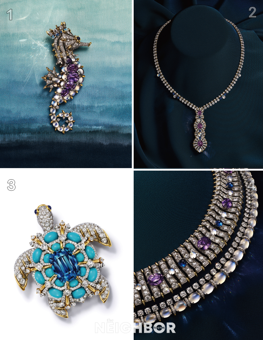 ¿©¸§ Ä÷º¼Ç¿¡¼´Â ÇØ¸¶¿Í ¹Ù´Ù°ÅºÏÀ» ÁÖÁ¦·Î ÇÑ ÀÛǰÀÌ ´«¿¡ ¶è´Ù. ÆÛÇà »çÆÄÀ̾î, ¹®½ºÅæ, ºí·ç »çÆÄÀÌ¾î µî°ú °°Àº ¿¹»óÄ¡ ¸øÇÑ Ä÷¯ÀÇ Á¶ÇÕÀ¸·Î ź»ýÇÑ ÇØ¸¶ ¸ðƼÇÁ´Â Ŭ·¡½Ä µðÀÚÀο¡ »ýµ¿°¨À» ºÒ¾î³Ö´Â´Ù. ƯÈ÷ 1600½Ã°£ ÀÌ»óÀÇ Á¤±³ÇÑ ¼öÀÛ¾÷À» ÅëÇØ ¿Ï¼ºµÈ ³×Å©¸®½º´Â ÃÑ 11ij·µ ÀÌ»óÀÇ ÆÛÇà »çÆÄÀ̾ Áß½ÉÀ¸·Î ¹®½ºÅæ, ´ÙÀ̾Ƹóµå, ºí·ç »çÆÄÀ̾ Á¶È¸¦ ÀÌ·ç¸ç ƼÆÄ´Ï¸¸ÀÇ ¼ö°ø¿¹ ±â¼úÀ» Áõ¸íÇÑ´Ù. ÀÌ ³×Å©¸®½º´Â ÃÑ ¼¼ °¡Áö ¹æ½ÄÀ¸·Î Âø¿ë °¡´ÉÇÑ µðÀÚÀÎÀ̶ó´Â Á¡µµ Ưº°ÇÏ´Ù. ¹Ù´Ù°ÅºÏÀº 1961³â ºí·ç ºÏÀÇ ¾ÆÄ«ÀÌºê ºê·ÎÄ¡¸¦ Çö´ëÀûÀ¸·Î ÀçÇØ¼®ÇÑ Ä÷º¼ÇÀÌ´Ù. ¾ÆÄí¾Æ¸¶¸°°ú ÅÍŰ¼®Àº Ä÷º¼Ç¿¡ û·®°¨À» ´õÇϰí, ´ÙÀ̾Ƹóµå·Î Á¤±³ÇÏ°Ô ¼¼°øµÈ ÀÔüÀûÀÌ°í µ¶Æ¯ÇÑ ±¸Á¶ÀÇ ºê·ÎÄ¡(one-of-a-kind Figurative Brooch)·Î ±¸ÇöµÇ¾î Á¶°¢ ÀÛǰ¿¡ ºñ°ßµÉ ¸¸Å ³î¶ó¿î ¿Ï¼ºµµ¿Í ¿¹¼ú¼ºÀ» ÀÚ¶ûÇÑ´Ù.