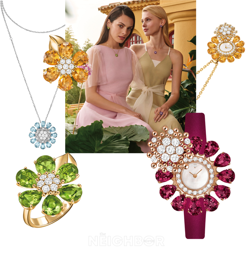 ÀÚ¿¬ÀÇ ¾Æ¸§´Ù¿ò¿¡ ¸ÅȤµÇ¾î¿Â ¹ÝŬ¸®ÇÁ ¾ÆÆçÀº »õ·Î¿î ‘Ç÷¹¸£ µå ÇÏ¿ÍÀÌ(Fleurs d’ Hawai)’ Ä÷º¼ÇÀ» ¼±º¸ÀÌ¸ç ¸ÞÁ¾ÀÇ Á¤¿øÀ» ´õ¿í dz¼ºÇÏ°Ô Àå½ÄÇß´Ù. ²ÉÀº ¸ÞÁ¾ ¿ª»çÀÇ ½ÃÀÛºÎÅÍ Ã¢ÀǼºÀ» ºÒ¾î³ÖÀº ¿µ°¨ÀÇ ¿øÃµ. »ý¸í·ÂÀ¸·Î °¡µæÇÑ Á¤¿øÀ» ¹¦»çÇϰíÀÚ ´Ùä·Î¿î Ä÷¯·Î ±¸¼ºÇÑ Ç÷¹¸£ µå ÇÏ¿ÍÀÌ Ä÷º¼ÇÀº ÆÄÀÎ ½ºÅæÀ¸·Î ÇÇ¿ö³½ ²ÉÀÙ, ´ÙÀ̾Ƹóµå·Î Ç¥ÇöÇÑ ¾Ï¼ú, °ñµå·Î Á¦ÀÛÇÑ ÀÙÀ¸·Î ¿Ï¼ºÇß´Ù. À̸¦ ÅëÇØ ¸ÞÁ¾ÀÌ ÇÏÀÌ Á־󸮿¡¼ ¿À·§µ¿¾È Ãß±¸Çؿ Ä÷¯ Áª½ºÅæ¿¡ °üÇÑ ¹ÌÇÐÀ» ¸íÈ®È÷ µå·¯³½´Ù. ½ÃÆ®¸°, ·Îµ¹¶óÀÌÆ®, ¾ÆÄí¾Æ¸¶¸°, Æä¸®µµÆ®, ¾Ö¹Ì½Ã½ºÆ®±îÁö ÃÑ ´Ù¼¸ Á¾·ùÀÇ À¯»ö º¸¼®À» ¾ö¼±ÇØ Åº»ýÇÑ À̾, ¸µ, Ææ´øÆ®, ¿öÄ¡´Â ±íÀÌ ÀÖ´Â µ¿½Ã¿¡ ½Åºñ·Î¿î ºûÀ» ¹ßÇÑ´Ù.