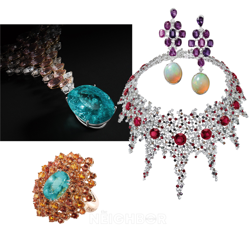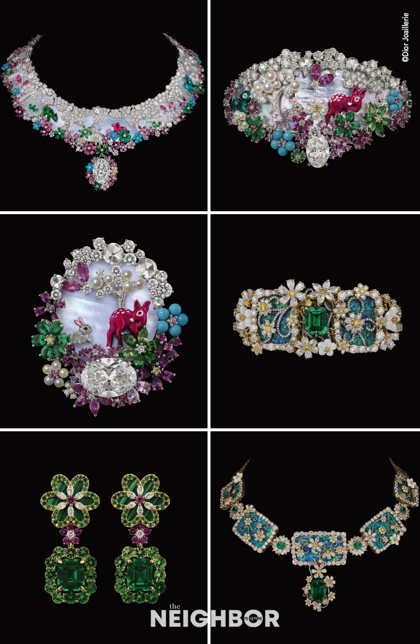 º°ÀÌ ºû³ª´Â ¸ùÅä·çÀÇ ÇÏ´Ã ¾Æ·¡, ¹«½´ µð¿ÃÀÌ ¼ÒÁßÈ÷ ¿©°å´ø ÆòÈÀÇ ¾È½ÄóÀÎ »þÅä µå ¶ó ÄÝ ´©¾Æ¸£ Á¤¿øÀ» ¹è°æÀ¸·Î ºòÅõ¾Æ¸£ µå Ä«½ºÅÚ¶õÀÇ »õ·Î¿î ‘Diorexquis’ ÇÏÀÌ ÁÖ¾ó¸® Ä÷º¼Ç ÀÛǰµéÀÌ ¸ð½ÀÀ» µå·¯³Â´Ù. Á¤±³ÇÏ°Ô Á¶°¢ÇØ ÃþÃþÀÌ ¹èÄ¡ÇÑ Áª½ºÅæÀÌ ´ÙÀ̾Ƹóµå¿Í ´ë´ãÇÏ°Ô ¾î¿ì·¯Á® dz¼ºÇÑ º¼·ý°¨ÀÌ µ¸º¸ÀÌ´Â µðÀÚÀÎÀº °èÀýÀÇ º¯È ¼Ó ÀÚ¿¬ÀÌ ºú¾î³»´Â ¾Æ¸§´Ù¿òÀ» ´ãÀº Ưº°ÇÑ À̾߱â·Î ¿Ï¼ºµÆ´Ù. »ýµ¿°¨ ³ÑÄ¡´Â Ä÷¯ ÆÈ·¹Æ®·Î ½Ã°£ÀÇ È帧°ú °èÀýÀÇ ¸®µëÀ» ±×·Á³»´Â ÇÏÀÌ Á־󸮴 ¿ÀÆÈ µÎºí·¹(Opal Doublet), Çø®Å© ¾Æ ÁÖ¸£(Plique-à-Jour) ¿¡³ª¸á ±â¹ý µîÀÇ Å¹¿ùÇÑ ÀåÀÎ ±â¼ú°ú ´«ºÎ½Å ºûÀ» ǰÀº ¼ö¸¹Àº Áª½ºÅæÀ¸·Î »ý¸í·ÂÀ» ¹ß»êÇÑ´Ù. ¸ÅȤÀûÀÎ ÇÏÀÌ ÁÖ¾ó¸® ÇǽºµéÀº ¸¶¸®¾Æ ±×¶óÄ¡¾Æ Ä¡¿ì¸®ÀÇ ¿ÀÆ® ÄíÆ¢¸£ ½Ç·ç¿§°ú ¾î¿ì·¯Áö¸ç ´õ¿í µ¸º¸¿´°í, °í¿äÇÑ ¿ì¾ÆÇÔÀÇ ¼ø°£ ÀÌÈÄ ÆîÃÄÁö´Â Àå´ëÇÑ ºÒ²É³îÀÌó·³, µð¿Ã ÇϿ콺ÀÇ Á¤±³ÇÑ ³ëÇϿ찡 °í½º¶õÈ÷ µå·¯³ª´Â ¸¶¹ý °°Àº ¼ø°£À» ¿Ï¼ºÇß´Ù.