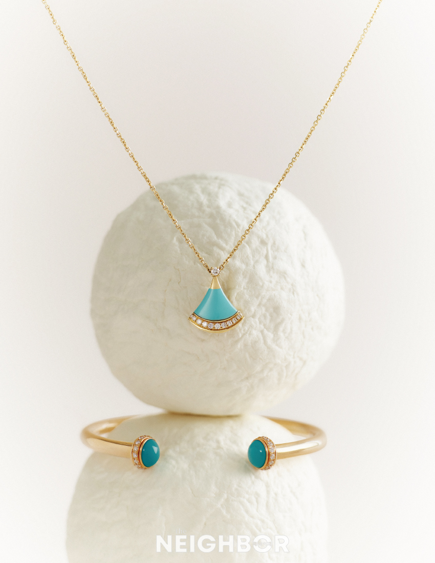 Bvlgari ¾ÆÀÌÄÚ´ÐÇÑ ºÎä ¸ð¾ç ¸ðƼÇÁ¸¦ ÅÍŰ¼®°ú ´ÙÀ̾Ƹóµå ÆÄº£ ¼¼ÆÃÀ¸·Î ÀçÇØ¼®ÇÑ µð¹Ù½º µå¸² ¿»·Î °ñµå ³×Å©¸®½º 6¹é10¸¸¿ø.