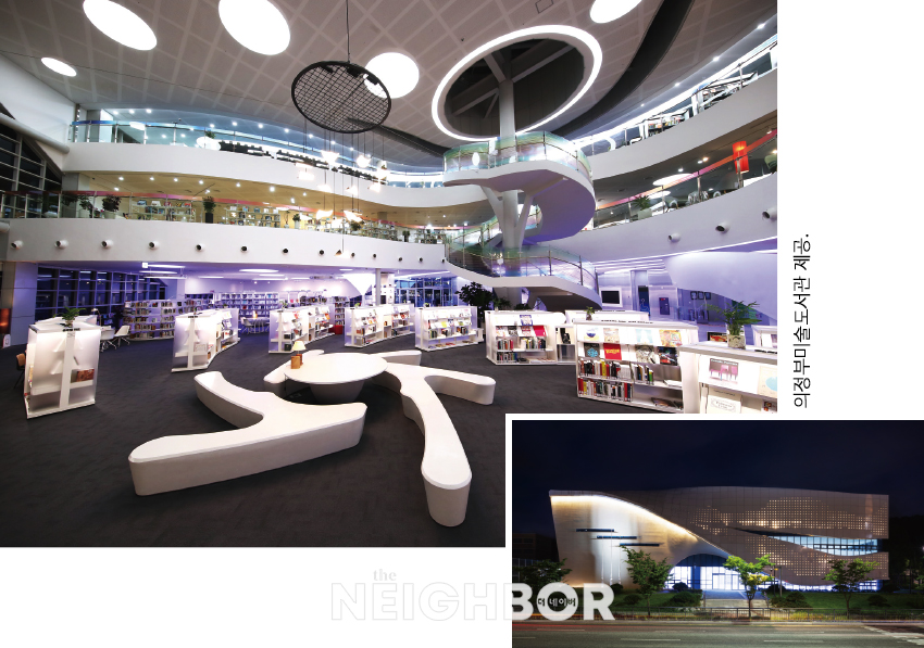 ±¹³» ÃÖÃÊÀÇ ¹Ì¼ú Àü¹® µµ¼°üÀÎ ÀÇÁ¤ºÎ¹Ì¼úµµ¼°ü. À̰÷Àº ´Ü¼øÈ÷ ¹Ì¼ú °ü·Ã À弸¸ ´Ù·ç´Â µµ¼°üÀÌ ¾Æ´Ï¶ó ¹Ì¼ú°ü°ú µµ¼°üÀ» °áÇÕÇÑ º¹ÇÕ°ø°£À» Ç¥¹æÇÑ´Ù. Ã¥À» À§ÇÑ ¼°¡¿Í ½ÅÁø ÀÛ°¡¿¡°Ô ¿¸° Àü½Ã½ÇÀÌ ÇÑ °Ç¹°¿¡ °øÁ¸Çϸç Áֹΰú ¿¹¼ú°¡°¡ ¿¬°áµÇ´Â °ø°£À» ¿Ï¼ºÇÑ °ÍÀÌ´Ù. Àüü °ø°£Àº °Ç¹° Áß¾ÓÀÇ ³ª¼±Çü °è´ÜÀ» ÅëÇØ ¿¬°áµÇ¸ç, °¢ ÃþÀÌ °³¹æµÈ ÇüŶó ¾î´À ³ôÀÌ¿¡¼°Ç °Ç¹° Àüü¸¦ Á¶¸ÁÇÒ ¼ö ÀÖ´Ù. ÀÇÁ¤ºÎÀ½¾Çµµ¼°ü°ú ÇÔ²² ½Ã¹ÎÀÇ ¿¹¼ú Á¢±Ù¼ºÀ» ³ôÀÌ´Â Áö¿ªÀÇ ÀÚ¶ûÀÌ µÉ ¸¸ÇÑ ½Ã¼³ÀÌ´Ù.