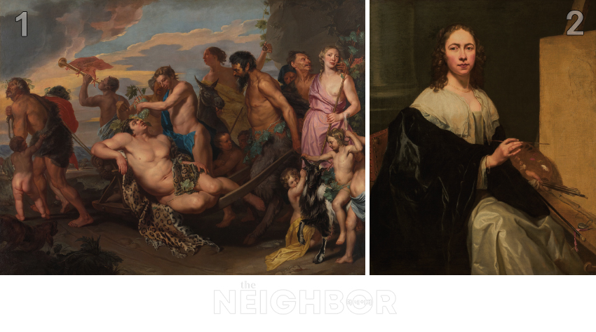 1 Michaelina Wautier, ‘The Triumph of Bacchus’, c. 1655~1659, Oil on canvas, 271.5×355.5cm, Kunsthistorisches Museum, Picture Gallery ©KHM-Museumsverband. 2 Michaelina Wautier, ‘Self-portrait’, c. 1650, Oil on canvas, 120×102cm, Private collection. Photograph ©Museum of Fine Arts, Boston.