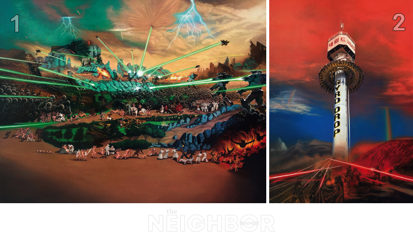 1 À¯½Å¾Ö, ‘Ghetto Bouquet’, Oil on linen canvas, 2025, 112.1×145.5×3cm. © À¯½Å¾Ö 2 À¯½Å¾Ö, ‘Fear Arrives Before Gravity Does,’ Oil on linen canvas, 2025, 90.9×65.1×3cm. © À¯½Å¾Ö