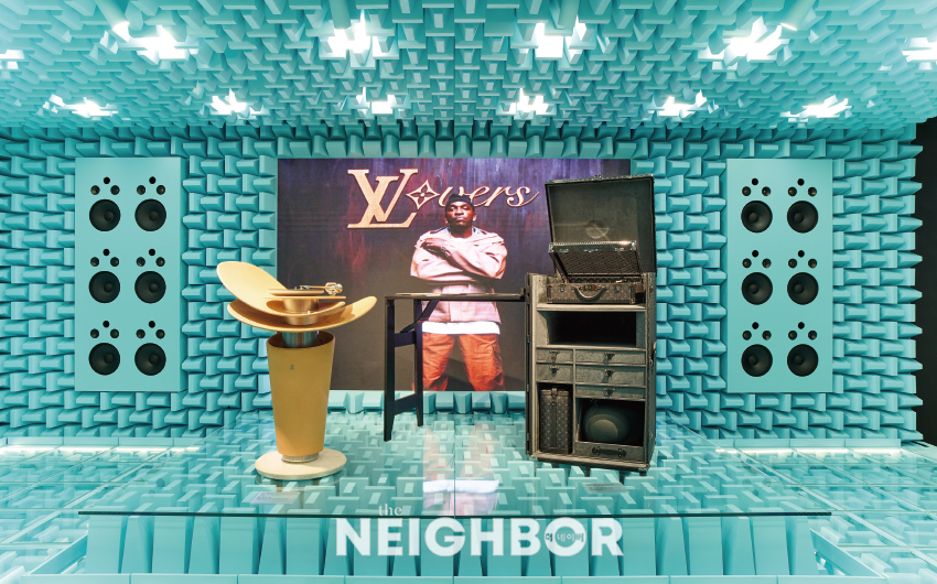 ¹ÝÇâÀÌ Â÷´ÜµÈ µí ¼³°èµÈ °ø°£¿¡¼ Àü°³ÇÏ´Â ‘À½¾Ç’ ·ë. ÇϿ콺ÀÇ ÅÍÄ¡¸¦ °¡¹ÌÇÑ ÈÞ´ë¿ë ½ºÇÇÄ¿, DJ ¹Ú½º¸¦ ¹èÄ¡Çß´Ù.