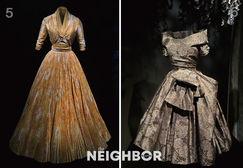 5 Christian Dior <Marcel Pagnol> Christian Dior Haute Couture Printemps-été 1952. 6 Christian Dior <Tokio> Christian Dior Haute Couture Automne/hiver 1955 Photo: Courtesy of Fondation Azzedine Alaïa(4, 5).
