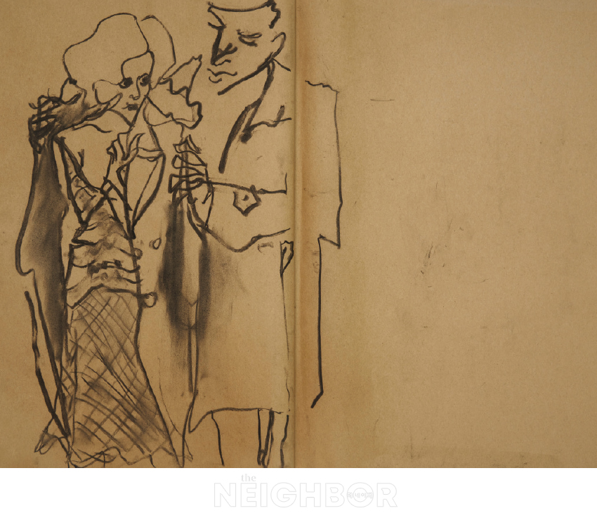 ¾Ë¸¶ ÆçÆ®Çڵ鷯, ‘¹«Á¦’, 2025, ½ºÄÉÄ¡ºÏ Á¾ÀÌ¿¡ ¸ñź, 38×52cm.