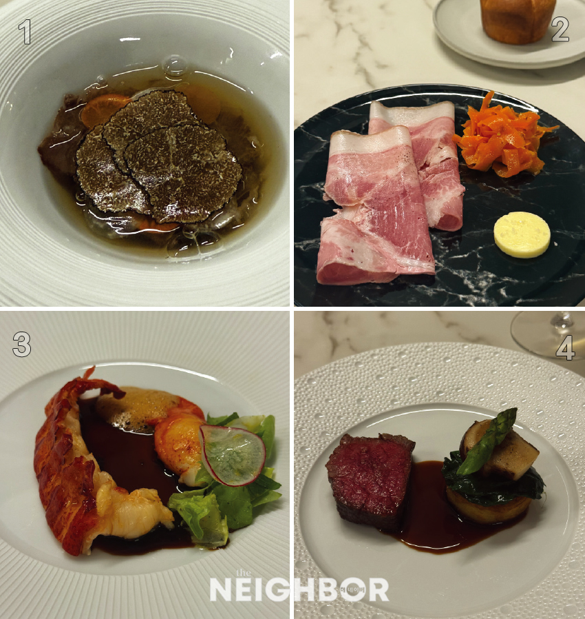 ¸ÞÀÎ µð½Ã·Î´Â ÈǸ¢ÇÏ°Ô ±¸¿ö³½ 䳡 ½ºÅ×ÀÌÅ©¿Í ÇÔ²² Ãß°¡ ¸Þ´º·Î ÁÖ¹®ÇÑ ‘Åä³¢ ¾Ë¶ó ·Î¿(Lapin à la Royale)’ÀÌ ´ë¹Ì¸¦ Àå½ÄÇß´Ù. Çѱ¹¿¡¼´Â »ý¼ÒÇÏÁö¸¸ »ç³É ¹®È°¡ ¹ß´ÞÇÑ ÇÁ¶û½º¿¡¼ Åä³¢´Â °¡±Ý·ù ´ÙÀ½À¸·Î Ä£¼÷ÇÑ ´Ü¹éÁú¿øÀÌ´Ù. »ç³ÉÀ°À» ¹ß°ñÇØ ¹ÝÁ×À» ¸¸µé°í, Æ®·¯ÇÃ, ³»Àå°ú ÇǸ¦ ³óÃàÇØ ¿Ï¼ºÇÑ ÁøÇÑ ¼Ò½º¸¦ ‘¿Õ½Çdz(à la royal)’À̶ó°í Ç¥ÇöÇϴµ¥, À̰÷¿¡¼´Â Åä³¢ °í±â¸¦ Á¶¹ÐÇÏ°Ô ºÎ¼Áö´Â ÆÄÅ×(Pâté) Çü½ÄÀ¸·Î ¾ÐÃàÇØ³Â´Ù. Åä³¢ °í±â ƯÀ¯ÀÇ ´ã¹éÇÔÀ» ¹ÙÅÁÀ¸·Î °í¼ÒÇÔ µÚ¿¡ ¼û¾î ÀÖ´Â ÀºÀºÇÑ ½Ô½ÒÇÔÀÌ ¸ÀÀÇ ±íÀ̸¦ ´õÇß´Ù. ¾ÆÁÖ ¹Ì¼¼ÇÏ°Ô ½ºÄ¡´Â öºÐ°¨, £Àº ¿ÍÀÎ ¼Ò½ºÀÇ ³óÃàµÈ ´Ü¸À, ±×¸®°í Æ®·¯ÇÃÀÇ Çâ±â°¡ ¾î¿ì·¯Áö¸ç ±æ°í ¿ì¾ÆÇÑ ÇǴϽø¦ ¼±»çÇß´Ù. ¹ÚÁØÇö ¼ÎÇÁ°¡ °í¼¿Í ¿À·¡µÈ ÀâÁö¸¦ ޵¶Çϸç Ŭ·¡½ÄÇÑ ¿ä¸®¸¦ Çö´ëÀûÀ¸·Î Ç¥ÇöÇÏ·Á Çß´ø ³ë·ÂÀÌ Á¢½Ã¿¡ °í½º¶õÈ÷ ´ã°Ü ÀÖ¾ú´Ù. ¿ä¸®ÀÇ »À´ë°¡ µÇ´Â ¼Ò½º¿¡ ´ëÇÑ ±×ÀÇ Ã¶ÇÐÀº È®°íÇߴµ¥, ÀÎÀ§ÀûÀÎ ¸À ´ë½Å Àç·á º»¿¬ÀÇ ¼ø¼öÇÑ ¸ÀÀ» ÀÀÃàÇϱâ À§ÇØ Á긦 Àû±Ø Ȱ¿ëÇÑ´Ù°í. ¸ÞÀÎ Àç·áÀÇ °í±â¿Í »À¸¦ 2~3Àϰ£ ¹¶±ÙÈ÷ ²ú¿©³»¾î, Àç·á°¡ °¡Áø °¡Àå ±í°í Áø½ÇÇÑ ¸ÀÀ» ÇÑ ¹æ¿ïÀÇ ¼Ò½º¿¡ ´ã¾Æ³»·Á´Â ³ë·Â. ±× Áö³ÇÑ ½Ã°£°ú Á¤¼ºÀÌ ¶ó»Ç¶ßÀÇ Á¢½Ã À§¿¡¼ ¿À·ÔÀÌ ºû³ª°í ÀÖ¾ú´Ù.