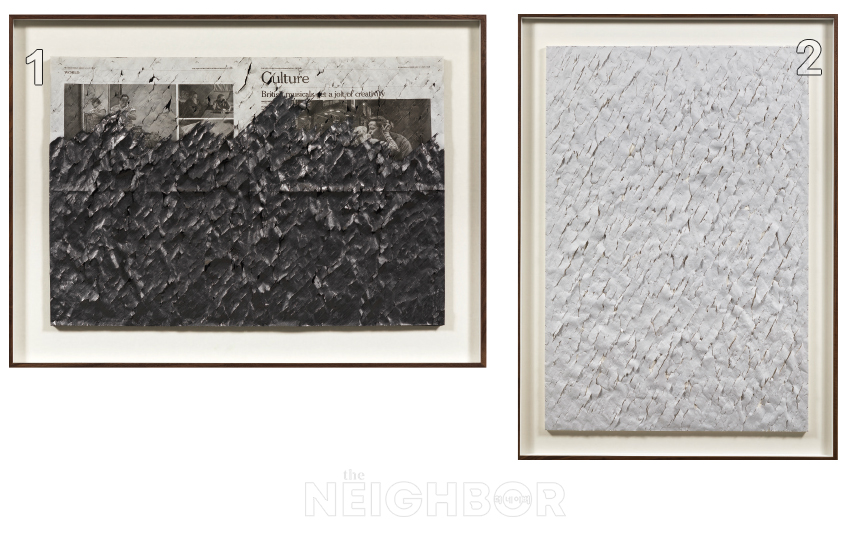 1 Choi Byung-so, ‘Untitled 0230305’, 2023, Ballpoint pen and pencil on newspaper, 54.5×80×1cm, Framed 71×96×4.2cm. Courtesy of the artist and Perrotin. 2 Choi Byung-so, ‘Untitled 0241029’, 2024, Ballpoint pen on paper, 120×80×1cm, Framed 136.3×98×4.5cm. Courtesy of the artist and Perrotin.