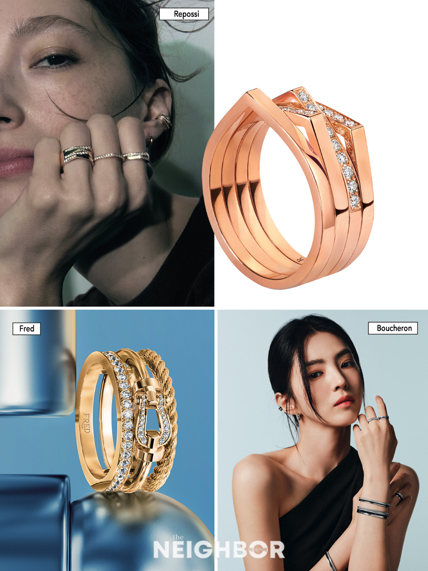 Áß¼¼ ¼ºº®¿¡¼ ¿µ°¨ ¹ÞÀº µ¥ÄÚ ÆÓ¸®½º ±â¹ýÀÇ Æ÷Á¦¼Ç ¸µ. ºÒ±ÔÄ¢ÇÑ Ç¥¸éÀÌ ºûÀ» ¹Ý»çÇÏ¸ç ±íÀº ±¤Ã¤¸¦ ÀھƳ»´Â °ÍÀÌ Æ¯Â¡ÀÌ´Ù. ½½¸²ÇÑ 2.8mm »çÀÌÁî·Î ¼±º¸ÀÌ´Â ´º Æ÷Á¦¼Ç ¸µÀº 18K ·ÎÁî·ÈÀÌÆ® °ñµå ¸µ À§ ´ÙÀ̾Ƹóµå ¼¼ÆÃ¿¡ º¯ÁÖ¸¦ ÁØ µðÀÚÀÎÀ¸·Î Æø³ÐÀº ¼±ÅÃÁö¸¦ Á¦°øÇÑ´Ù.